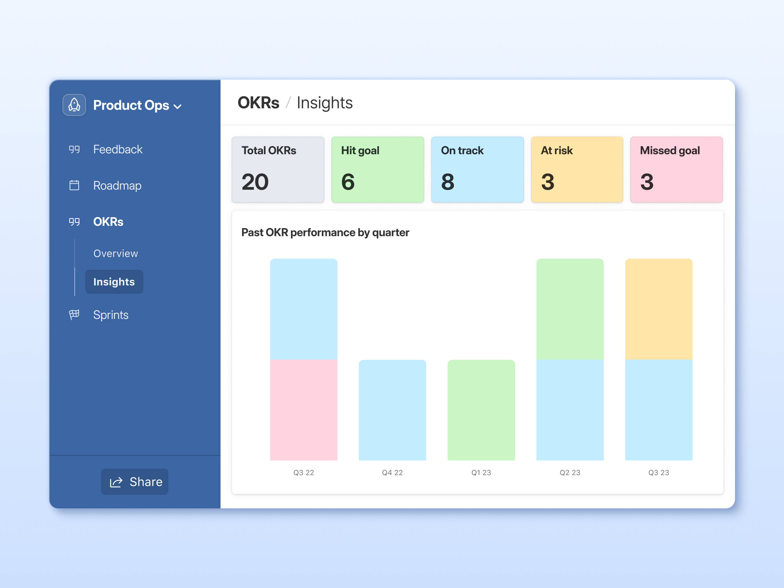 Custom views give stakeholders insight into OKR status, completion rates, risk scores, and more—all in real time.